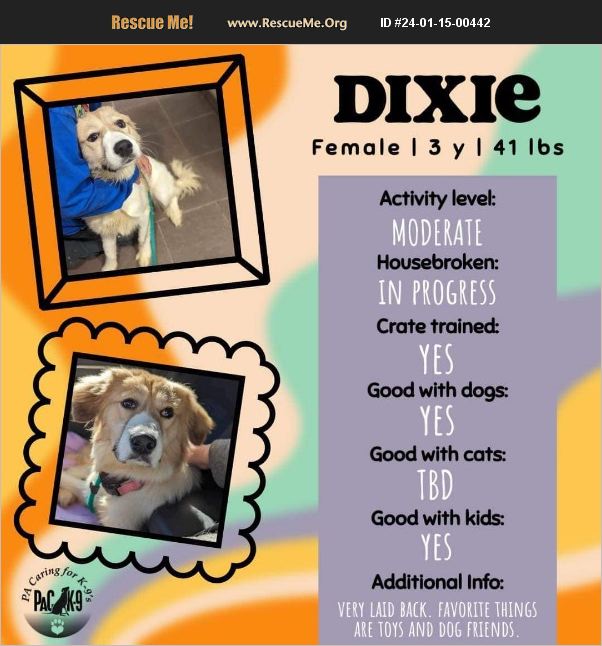 PLEASE READ WHOLE AD- DOG IS COMING SOON- APPLY NOW AS IT TAKES 7-10 DAYS DOG ARRIVAL DATE IS DEPENDENT ON FOSTER AVAILABILITY. WE ARE SHORT FOSTERS SO IT WILL TAKE TIME AND WE CANNOT GUARANTEE A DATE OR LOCATION. All dogs are kept up to date on age appropriate vaccines/preventatives while in foster care. Puppies are not yet altered due to their young age. Applications to adopt can be found online at https://www.pack9rescue.org/applications/ We are PA Caring for K-9's, an all-breed dog rescue that is solely run by volunteers. Most of our dogs are rescued from high kill shelters in the South. If the dog is posted, they are still available! Once arriving, these dogs enter foster homes, as we do not have a shelter. We cannot adopt out dogs to a home with dogs that are not fixed or up to date on shots. If interested in adopting, please submit an application online at www.pack9rescue.org. Our adoption fee for altered dogs is $350 and goes directly to saving the lives of more dogs. Our adoption fee for unaltered puppies will be $400 which includes a refundable $50 deposit upon receipt of spay/neuter certificate. Learn more about adopting from us or volunteering for us at www.pack9rescue.org or check us out on Facebook for more information and a complete list of dogs available for adoption. https://www.facebook.com/PaCaringForK9s/ See upcoming events below where PA Caring for K9's will be with some of our adoptable dogs! Saturday, January 27, 2024 11am-3pm That Fish Place That Pet Place (237 Centerville Rd, Lancaster, PA) Saturday, February 17, 2024 10am-1pm Apple Nissan (1212 Loucks Rd, York, PA) Saturday, March 16, 2024 10am-1pm Apple Subaru (1202 Loucks Rd, York, PA) Saturday, April 20, 2024 11am-3pm That Fish Place That Pet Place (237 Centerville Rd, Lancaster, PA) Please check our Facebook page closer to each event as we will update daily with dogs who will be attending. All are invited to meet our dogs, but only pre-approved adopters with all household humans and dogs present will be able to adopt at the event. Apply today at https://www.pack9rescue.org/applications/ to become pre-approved.