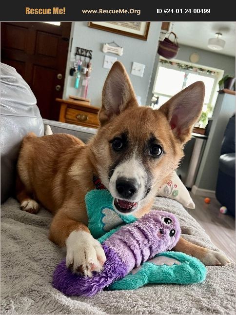 Havana is a diamond in the ruff! She is a 5-month old corgi mix with one of the best personalities. She has the classic corgi shape, coloring, and coat but with the bonus of a big, beautiful tail too. She is currently around 19lbs but is still growing. Havana can be timid when first meeting people, but it doesn't take her long to become best friends with them. She has a silly personality and loves to frolic and chat to her foster mom when she's ready to play and she is so affectionate once she trusts you. She spends most evenings snuggled up on the couch with her foster mom after a long day of being a puppy. Her favorite toys are any with squeakers and will walk around the house with them. She is super food motivated and eager to learn. She is crate trained and working on her potty training. She loves to play with other dogs and would benefit from having another dog in the home to help with her confidence. Havana requires an adopter with a fenced yard and kids 12 and older. If you're interested in meeting Havana, the first step is to complete our meet and greet application at https://www.corgisandfriends.com/forms We require the application, home and reference check, and meet with everyone in the home. Havana is spayed, utd on vaccs, chipped, and HW-. Her adoption fee is $425 and we are not adopting outside of Colorado.