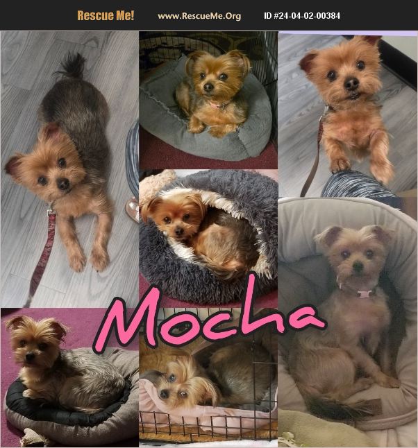 Mocha is a very calm & loveable little girl who just wants to be with you, on your lap, in her bed or snuggling against you in your bed. In fact, she'll stay in your bed while you brush your teeth, make your coffee and (when you) return to the bedroom and say 'let's go potty.' When you tell her to 'go outside potty', she will. But you have to watch her so she actually goes. If not, she will go potty in the house. If you are looking for a dog that doesn't lick & doesn't jump on you scratching, Mocha is the dog for you. She enjoys walks, loves treats, but most of all, she revels in tossing her bed upside-down & napping. She's not a picky eater & is sure to clean her bowl every time! She is people, dog & calm cat friendly. Mocha is very stoic. So, she needs someone who will clean her ears every week & bathe her in her special shampoo every other week. Mocha is a precious soul. She's perfect for someone that wants a quiet companion to watch TV, take on walks, snuggle all night long.