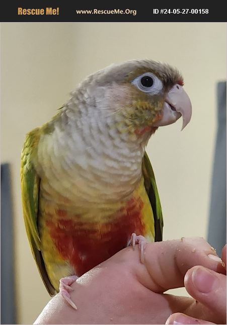 Coco the Pineapple Green Cheek Conure is in search of a loving forever home! We are fostering her for a family that moved out of the state suddenly, but we are leaving for a trip in a few days and need her to go to her forever home as soon as possible! She will need to go to a home that is experienced with birds, as conures are nippy and loud. She takes a couple weeks to become used to new people, but she is super smart and sweet! She will also need to go somewhere that will not clip her wings, as she is a great flier! She has been raised on a unhealthy pet store seed diet and will need to continue being transitioned onto chop and pellets by her new family. If you think you could be a good fit for Coco, please reach out and let us know! We are asking a very small rehoming fee, compared to what we paid for her and her cage setup. She will come with her cage and all supplies, including perches, toys, food bowl, water bowl, bathing bowls, and her old seed mix to help with transitioning to healthy food. Thanks!