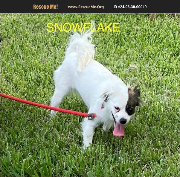 SNOWFLAKE is a super sweet, loving 3yr spay (7/5) PAPILLON mix girl. Little Snowflake (15#) is a Velcro pup, sadly her mother has been incarcerated. So, Snowflake and her mom Baby Girl have to find a new home. They are currently in Spring Hill (Google). To have an adoption application emailed to you. TEXT 727 271-0139 with your name, email address and which pup you are interested in. Snowflake has never been around small children, so please no small children.