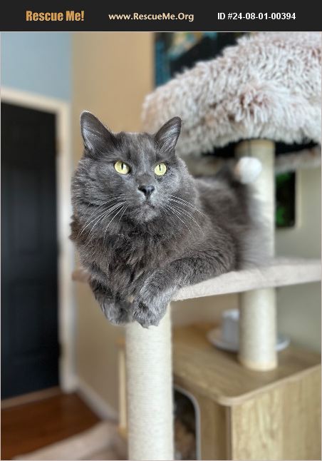 Ivan will be turning 4 years old this year. He is a Maine coon/ blue Russian mix. He is very playful, cuddly, and loves the outdoors via porches or windows! He is leash trained, and has traveled in cars for long periods of time. Ivan loves balls, tunnels, treats, pets, and being carried like a baby. Ivan has gotten along with his pug sister, but new dogs are scary to him. He has met other cats and although he wants to play with them, his 18lbs of fur has been intimidating for them. For his new home, Ivan would best thrive without babies, young children, or large dogs. Ivan needs gabapentin medication prior to vet visits, and has been trialed on daily anti anxiety meds to make sure he does not pee outside of his litter box. (This behavior only started when a baby was introduced into the home, he was litter box trained for 3 years prior). He needs someone who is able to keep up with his meds. In return, he will give you plenty of kitty kisses and purr loudly on your lap.