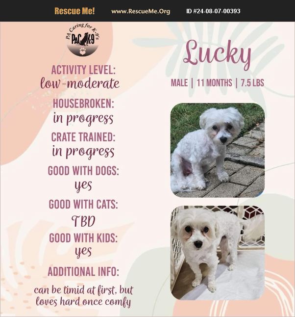 PLEASE READ WHOLE AD- DOG IS COMING SOON- APPLY NOW AS IT TAKES 7-10 DAYS DOG ARRIVAL DATE IS DEPENDENT ON FOSTER AVAILABILITY. WE ARE SHORT FOSTERS SO IT WILL TAKE TIME AND WE CANNOT GUARANTEE A DATE OR LOCATION. All dogs are kept up to date on age appropriate vaccines/preventatives while in foster care. Puppies are not yet altered due to their young age. Applications to adopt can be found online at https://www.pack9rescue.org/applications/ We are PA Caring for K-9's, an all-breed dog rescue that is solely run by volunteers. Most of our dogs are rescued from high kill shelters in the South. If the dog is posted, they are still available! Once arriving, these dogs enter foster homes, as we do not have a shelter. We cannot adopt out dogs to a home with dogs that are not fixed or up to date on shots. If interested in adopting, please submit an application online at www.pack9rescue.org . Our adoption fee for altered dogs is $350 and goes directly to saving the lives of more dogs. Our adoption fee for unaltered puppies will be $400 which includes a refundable $50 deposit upon receipt of spay/neuter certificate. Learn more about adopting from us or volunteering for us at www.pack9rescue.org or check us out on Facebook for more information and a complete list of dogs available for adoption. https://www.facebook.com/PaCaringForK9s/ See upcoming events below where PA Caring for K9's will be with some of our adoptable dogs! Saturday, August 17, 2024 10am-1pm Ashcombe Farm and Greenhouse (906 W Grantham Rd, Mechanicsburg, PA) Please check our Facebook page closer to each event as we will update daily with dogs who will be attending. All are invited to meet our dogs, but only pre-approved adopters with all household humans and dogs present will be able to adopt at the event. Apply today at https://www.pack9rescue.org/applications/ to become pre-approved.