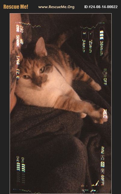 This is Tarot. She is a calico Tabby mix. She is about 2 years and some change. Her birthday is may 23 2022 she is a little skidish at first but eventually warms up. She is very very playful but such a sweet heart. I unfortunately have to rehome her cuz I am moving and can't take her with me. I hope she find a loving home!!