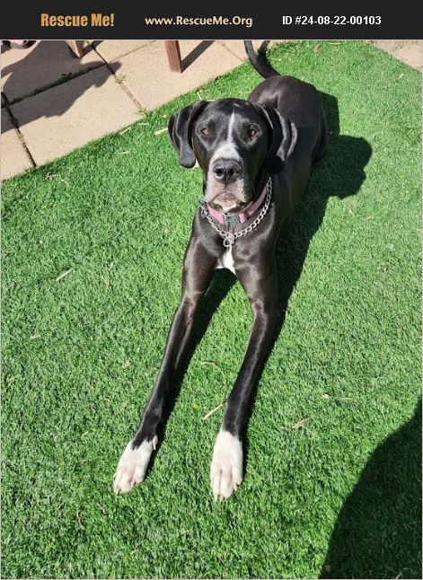 Darlah Jean is a wonderful and loving pup. It is hurting my heart to have to make this decision to surrender her. She is my Velcro dog, helps me steady me with my balance issues, and when I stop breathing (I have sleep apnea) she will wake me up. She knows her basic commands, is house trained and crate trained. When she is not trying to be the boss, she is best friends with my other Great Dane. They would do zoomies together, jump and play together, chew their sticks next to each other, even chewing on the same long stick together. I also have cats and almost daily it was a given that both of my dogs and three cats were piled onto my bed, with legs and paws, and fur, all over the place, and me getting the one square inch of space that was left of my bed! She is great with my one year old Grandson, approaching him very gently, sniffing him, and remaining calm when he touches her face and nose! Within a very short period of time there have been many major changes in Darlah Jean's life. We lived in a large house with a big fenced-in backyard, with two family members that Darlah Jean was very close with who adored her, her best friend my other Great Dane, and one of three of my cats. Within a couple of months, one family member passed, and as a result, with very little notice, we needed to move away from the other close family member. I needed to kennel them both during the move, where they were separated, only having short periods of time where they could be together in the yard. She was also separated from my cats, one also being her best friend. We moved from a large house with a big fence-in backyard to a very small apartment with no yard to run and play around in. With all of these major changes in her life, losing two very close family members, her home, and her pet friends while they were temporarily separated, she has not been able to find a new normal. She has become so anxious. Since she was a puppy she would play a lot and, to make sure she remained the alpha, play sometimes became a bit aggressive. At the old place she started pacing, playing less, laying down after a short period of playing, peeing in my other Great Dane's crate and bed when he wasn't near, and whining when crated even though she is crate trained. At the new place, she has been so anxious, and those behaviors have increased, and she just hasn't been able to reconnect with my other pets. Once she came home to the new place, there were boxes still unpacked and little room to roam around. When she was reunited with my other Great Dane, she rubbed noses with him, but when she returned indoors after going potty, jumped on him and bit him. He became nervous around her, and the cats hid. Since not being able to adjust to all of these sudden losses, even though it would be another change by her moving into a new furever home, I think she would be happiest in a home where she is the only pet and getting all of the attention. She is current on all her vaccinations, and is very healthy. She will absolutely melt your heart day after day!