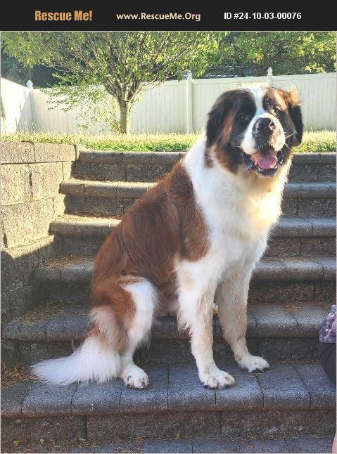 Hi! My name is Buck. I'm a 4-5 year old male St Bernard. I'm neutered and up to date on all of my shots. I'm currently staying with a nice family who came to the rescue and saved me last year when the mean people were going to jail and were getting ready to dump me at the dog pound. Dad is my favorite! Anywhere he goes, I go. I prefer to be within reaching distance of my human at all times. I know it was a lot for them to take on, since they have 4 Saints of their own. Dad said it would have broke his heart to know I ended up in the pound. One problem, they have a female who will not accept me?. I do well with the others though. We like to play in the big fenced in yard & take naps. Lots & lots of naps. I am truly a goodest boy!!! I'm house broken, I sit, shake, lay down, and even roll over when told. I'm easily bribed with treats. My hobbies include napping at your feet, napping beside you on the couch while you watch TV getting head scratches. Dad makes the best blueberry pancakes and eggs. Hint, hint?. Dad gets very sad when they talk about my furever home, but he says he knows it's best for me because of the female. If you are looking for 140 lbs of fluff & ��%BD%9D%A4��%BD��%BD%8Fto share your life with, I'm your guy. I can't wait to meet you! I am in the Altoona, Pa area.