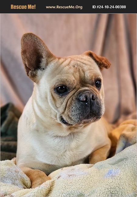 Important Information Please read! If you are interested in me after reading about me, please visit my site, http://www.breederadoptions.org and follow the instructions. The majority of the dogs we rescue, mostly breeder dogs, have lived their entire lives in less-than-ideal conditions so will need to be socialized, house and leash trained. Most have never lived in a house, walked on a leash, had a treat or sat in a lap. For many of them, their feet have never touched the ground after living for years on wire until they arrive at our main facility where they are evaluated, groomed and given vet care. Most of these dogs are not socialized and need to be cornered to be picked up, so are not suitable for people with physical disabilities or suffer from PTSD. They need folks who will make them the center of their world and help them learn to trust before even attempting to train. Please do not apply if you do not meet the requirements of the dogs we rescue. However, they will learn with time, love, patience and most of all, commitment. You must have an ample supply of all of these to reap the rewards of watching these very special dogs become your wonderful companion. We state any known health issues, all are altered unless there is a medical reason not to, which we will advise, any known medical issues addressed, are microchipped, are UTD on all vaccines and have been checked out by at least one veterinarian, usually two. We do not guarantee the health of any of our rescued dogs. The dogs we rescue have lived with other dogs all of their lives and most get along with other dogs. We state if they are dog aggressive. We require a permanent, full-time parent. That means you must be able to spend the majority of your time with your new companion to socialize and train. We do not, under any circumstances, place them in homes with young children as they have not been exposed to children and we do not know how they will react. Please do not waste your time or ours if you are not prepared to adopt within 2 weeks and you are not willing to pick the dog up at its location. Hi! My name is Marnie, and I am an adorable French bulldog girl that was born 7/18/21, and I weigh 25 pounds. I must have an adopter who is familiar with the needs of my breed. Respectful children over 7 years old would be okay with me. If you have been waiting for a gorgeous Frenchie, please ask for me on your application to http://www.breederadoptions.org. Love, Marnie 101924-17
