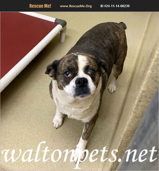 Picked up stray 11/8/24; voicemail left 11/8/24 at # on microchip, email sent 11/12/24 to email on microchip; no response from either. Available for adoption on 11/16/24. Already spayed and microchipped. If interested, go to www.waltonpets.net and complete an adoption application.