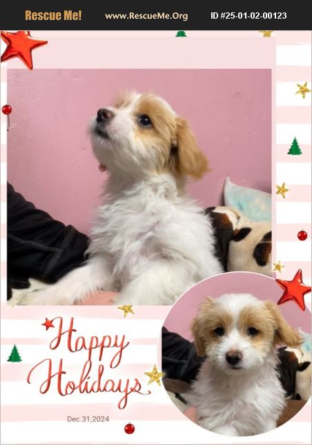 Merry is an adorable little 9 wk. old puppy, Born 11-1-24. Merry and her siblings were put in a box to be given away at only 4 weeks old! Her mother is a Malti-Poo and I was told that the father is a terrier/chihuahua cross... they think. Merry has had her first 2 shots and has been wormed twice also. She is very anxious to have her very own forever home and family!! Thank you for considering a rescue!