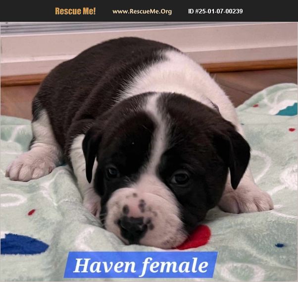 Meet Haven, our sweet 8-week-old pit mix puppy! ���%A4��%8F This little lady is a bundle of energy and affection, ready to bring so much joy to her forever home. Haven has received her first round of vaccinations and will be spayed before her adoption is finalized, ensuring she's healthy and ready for her new life. Pit bulls are known for their loving, loyal, and playful personalities, and Haven is no exception. She loves to cuddle up for naps, but also has plenty of puppy zoomies to burn off her youthful energy. Haven is sure to keep you on your toes, but her unconditional love and goofy antics will have you wrapped around her little paw in no time. With her floppy ears, soulful eyes, and wiggling butt, Haven is the total package. She's eager to learn, loves treats, and can't wait to go on adventures with her new family. Haven would thrive in an active home that can provide her with plenty of playtime, training, and affection.