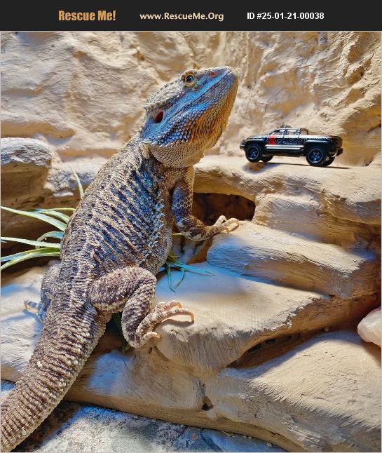 This is Ziggy. He is about 2 years old. I adopted Ziggy in May of 2022 as a stay at home mom. I have recently started a new job and never anticipated doing 3rd shift but that's what happened. With sleeping all day and working all night Ziggy isn't getting the love and attention he so very much deserves. Ziggy loves chasing bugs that you set out for him. He loves to explore new places and will wear a harness outdoors. He loves to soak up the natural sun in the summer time and is very mild tempered. He has been around my son all of his life so he does well with young kids. His favorite treat is bananas! He has a very large 2x4x4 enclosure that comes with ceramic tile flooring that can be removed for easy cleaning, a dig box, 3 beautiful pieces of Mopani driftwood for climbing, a flagstone basking platform and faux hedge panels for a greenery background. Tank includes UVB light bar a night heat bulb and a day heat bulb, a timer that automatically turns his lights on and off at set times so his sleep is always regulated. Text me if you're interested. Located in Lincoln NE
