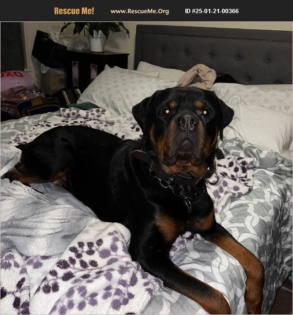 Django is a very energetic Rottie, who's always looking to play with a simple tennis ball. After much play, he turns to be a very relax dog, who loves his cuddles. He's up for adoption as his owner cannot have him for personal reasons. He's be great for a home with adults only, and in a house with a big yard for play. He's great with following commands.