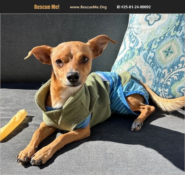 Meet Archie! Archie is a loving, curious, sweet, and spunky Chihuahua-Terrier mix. He is around a year old and weighs 10lbs. He is long and lean, with a soft red-brown coat and white chest. Archie is a loyal companion and is happiest when near his people. He loves to cuddle in a lap, on the couch, or under the covers in bed. Archie has moderate activity needs, enjoys daily walks, and is good on the leash. He is friendly to people of all ages and meets new people easily. He is especially loving, giving kisses and enthusiastic tail wags! He is calm around other household dogs and has not shown signs of food guarding or aggression. Archie is learning to play with his foster siblings and really enjoys playing chase with his Chiweenie foster brother. He is completely neutral to cats and will not mind them curling up next to him. He has shown a protective streak, barking when strangers come to the door and at unfamiliar dogs that he sees on walks, and he is getting better about that with training. He is intelligent and curious and learns quickly. Archie doesn't like to be left alone, so he would be an excellent sidekick to someone who would like a buddy to keep around throughout the day. Or if his people do leave during the day, it would be better for him to have other dogs in the house as companions which seems to put him at ease. He does great in the car and enjoys running errands. He also seems to love getting dressed! Archie is a great all-around small companion, easy to love, and full of joy! If you're interested in meeting Archie, come to our adoption event on the 1st and 3rd Saturday of each month from 11am-2pm, located at 6300 San Mateo NE in the south Sprouts parking lot. Alternatively, we can arrange a Private Meet-and-Greet with the foster parent and your household with a completed application. Complete an easy, no-obligation online application and take the first step towards welcoming Archie into your home by clicking on this link https://form.jotform.com/222028369049155 The adoption fee covers all vaccines, spay, microchip, and heartworm/tick-borne illness testing.