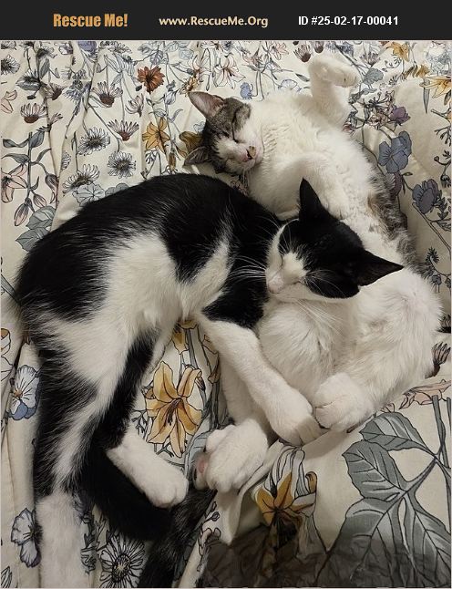 Hello, I'm Sir Hemingway. **MUST be adopted with Tank** I may be a bit shy at first but give me time and you'll see my playful, goofy side. I'm a polydactyl, which means I have extra toes - it's like I'm always wearing mittens! I love to hunt my toys and leave them on my foster mommys bed or bring them to my friends and leave them in the bowls. I'm rambunctious and playful but I do get scared if approached. I will come to you and even cuddle up on the bed or couch next to you. I'm not big on being picked up or held but I love attention in other ways. Tank (in picture with me) is my best friend, we do everything together and we help each other out of our shyness so I must be adopted with him. Contact our foster mom to learn more about us at [email protected] Adoption area is Tampa Bay
