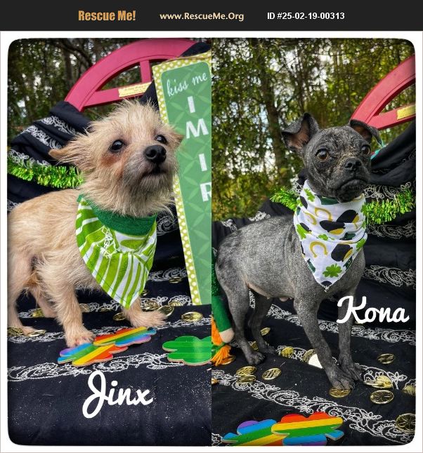 Intake Date 2-13-25 Bio Written: 2-19-25 Jinx and Kona were rescued from Highlands County Animal Services. They appear to be bonded and at this time we are striving to keep them together. They are both around 1 year old. Jinx is the little cairn terrier mix. She weighs 6.6 lbs. Kona looks like a French bulldog, but it sort of looks like she might have longer hair? She has demodex mange, so she doesn't have much hair. Don't worry we have started treatment and in a few months she will look like a different dog. The breeds are purely educated guesses. Meet and greet required if you have another dog. Call or text Alexandra 330-261-3934 if you're interested in adopting. The adoption donation for both is $400 and includes spays, UTD vaccines, and microchips. Please keep in mind that we try to match your application and lifestyle with a dog the best suits your home. We are the dogs advocate and we put their needs first in hopes that we are finding them a forever home. For this reason we don't operate on first come first serve. We do reserve the right to request photos of your home. You must be 21 years of age to adopt. We do reserve the right to deny any application.