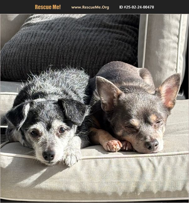 This is Shy and Mojo, I rescued them from a sad situation. Shy is on the left. She is 12, and very sweet. She wants to sit on your lap or cuddle in a comfy crate all day. Mojo is on the right. He is 11. He is the most CHILL dog you will ever meet. He gets tired just by waking up. He just sleeps all day. Both are potty trained, no issues. Trying to get them adopted together as they have grown up together.