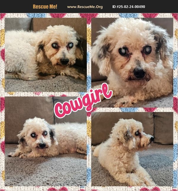 Meet Cowgirl! Age: approx 10 years old. Breed: poodle mix. Size: est 13lbs, she could lose a few pounds. Training: crate trained, working on house training and leash training. She will also use puppy pads. Good with dogs/cats? Yes to both. Good with men/women/kids? Yes, she gets along with any and every one she meets. Personality: a little shy initially but once she learns her surroundings, she is very affectionate and friendly. She is mostly blind but gets around very well. Our vet was surprised at how well she navigates a new room. Reason for rescue: seized by animal control, hoarding case. Cowgirl is spayed, heartworm negative, and current on vaccinations and preventatives. She has also had her teeth cleaned. If you are interested in adding this sweet baby to your family, please message for an adoption application. Adoption fee: no adoption fee to an approved home. Our normal adoption process still applies.