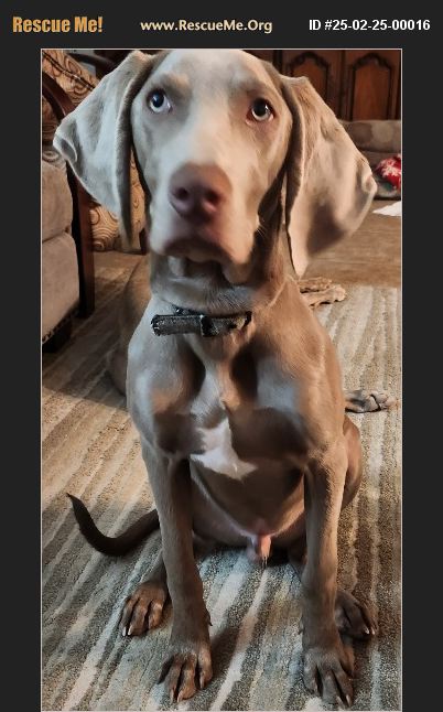 ADOPTION PENDING!!!! Back up adoption applications only. Young 6 month old Ozzie looked sheepishly at the man with the pole while he trembled. Ozzie's heartrate went up and his eyes widened with fear. He was put into a small locked cabinet in a truck unsure of why his freedom was suddenly taken away. After all, he was running free and had no rules.....until now. He arrived at a loud place with lots of barking dogs and a putrid odor in the air. People in white coats handled him pressing here and there on his body putting very sharp objects in him calling them vaccines. He was then put into a hard cement cage where people walked by telling him how cute he was but he still did not understand how he got here. What was this place???? He heard the word 'shelter' but didn't feel warm or cozy. Days went by and he was sleeping on concrete and walking in his own pee and poop. He knew he didn't do anything bad enough to deserve this. After all he is just a baby!!! So Ozzie came to us and is now warm and comfy in what he learned is his foster home. It is filled with nice people, soft beds and yummy food. He even has playmates that like to run and play as much as he does. He has learned that he ' goes' outside and no longer has to stand in filth. He cherishes his daily walks with lots of other dogs and has learned to walk nicely on a leash. He plays with an older dog that looks a lot like him and likes to tease her into barking at him. He's found joy in rolling on his back and falling asleep with his mouth wide open fully trusting everyone in his new foster home. Ozzie is a playful, energetic, 'naturally naughty' typical Weimaraner puppy. He's adjusted well and is fostered in the Palm Springs area. He'd love to find a family to grow old with and have other dogs and a few kids to play with. He's scheduled to��%BD��%BD%BD'��%BD��%BD%BD| ahem��%BD��%BD%BD'��%BD��%BD%BD| be neutered on March 4 and will be immediately available. We are attempting to contact adopters on our puppy list but will accept applications to find him the very best family. Please submit to www.socalweimrescue.org/pages/adopt We do not do 'first come first served' adoption. Ozzie will go to the family who fits him best and is committed to his care. Note from his foster: He is adorable. He is great with other dogs, he is pretty much house trained, learning more commands everyday...he is smart, trainable, loveable, adorable and needs a family to love him up. He is not aggressive and quite mellow for a dog of his age. We have photos and videos to prove his silly personality. Hit us up!