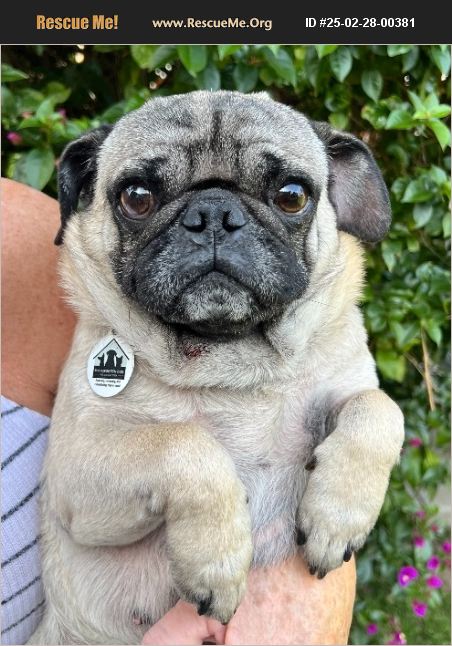 This handsome boy is Ollie! He is a 5 year old, 21lb, purebred Pug. Ollie's story is sad. His owner dumped him at the shelter with his brother where they were left in complete neglect. They went to our specialist where we found out that they both had terrible ear infections and skin so bad from months of flea infestation and environmental allergies. They have been receiving treatment and are doing so much better. Our vet feels that we should wait a couple more weeks before getting them neutered just because they came in such a bad state. Ollie and his brother were placed together in one foster home where we saw that they were not bonded at all and in fact, did not do well together. We separated them and Ollie's brother just recently got adopted. Ollie is such a smart boy with a yearning to learn. He is relaxed, happy, and so loving! We are looking for a pug savvy home where the owners are around most of the day. A home with a backyard would be ideal as he absolutely loves to sit in the sun and relax. We do see that he needs to be the only dog in the home. He was not raised by a good owner who did not socialize him properly, so it was all about competition for him, but when separated....he is absolute perfection! Ollie had such a rough life with his previous owner from being locked in a crate 14 hours a day, fed very bad food, never socialized, and never given any love, so we want the absolute best forever home for him! Please contact us at: [email protected] or 310-990-2020 Ollie is vaccinated, microchipped, and will be neutered when ready. We only adopt in the Greater Los Angeles Areas as an in person meet/greet, home check, and trial period are required.