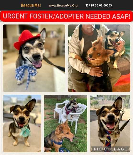 URGENT: FOSTER/ADOPTER NEEDED ASAP! Video included. Meet Jordan, the Sweetest Little Corgi Mix Looking for a Foster or His Forever Home! Everyone, this is Jordan, our young, adorable Corgi mix who is ready to melt your heart! Just look at that sweet face! Jordan's dad had a stoke and is in the hospital. He can no longer care for him. This precious boy is housebroken, neutered, and up-to-date on all his vaccines- completely ready to join your family! Jordan loves making new doggie friends, both big and small, and it's the cutest thing to watch him play and enjoy his time with other pups. He also adores his walks, soaking up love and affection, and never says no to his favorite treats. Jordan has so much love to give and dreams of the day he can snuggle up in a home of his very own, surrounded by the warmth of a family who loves him. Could you be the one to make Jordan's dream come true? Please consider opening your heart and home to this sweet angel. He will love you endlessly in return. Contact: Pumpkin Pawz Rescue- Jennifer Newman: (714) 366-8170 Adoption process must be 100% approved. Let's give Jordan the forever home he deserves!