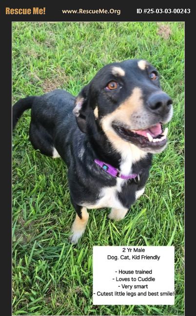 2-3 yr old neutered male basset /shepherd type mix. Good with other dogs, cats, and kids! Very smart and eager to please. Can be a little bossy to his dog friends when they are misbehaving but is otherwise a good playmate. Super cuddly! Rehome fee $50