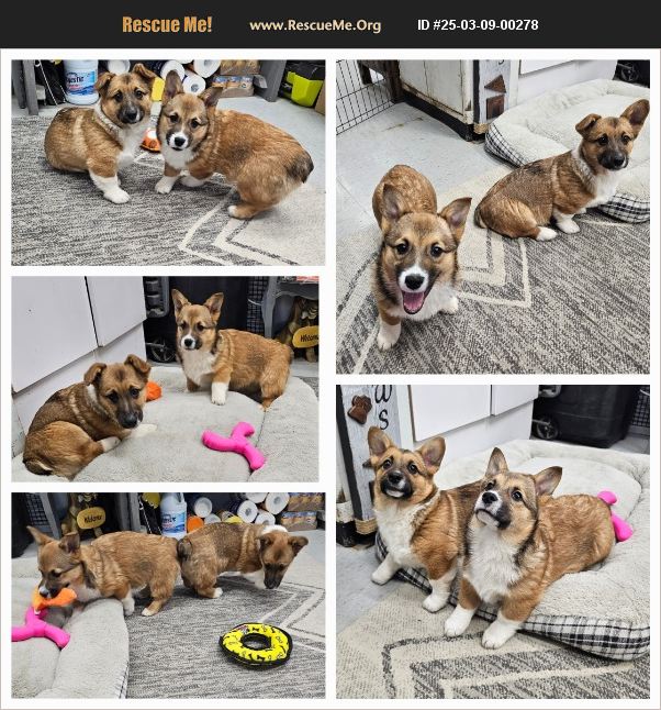 These 2 boys have a birth date of 11/9/24. They are very handsome boys and the typical corgi puppy. They came in to rescue as a breeder surrender. They were the last 2 of their litter and the family decided to place them in rescue to find these boys homes. This was not a mill or breeding facility. This was an individual family with just the parents. These boys have been well cared for which is why they wanted them placed in homes before they got much older. The adoption fee is 575.00 each with 75.00 off to help towards their neuter when they are age appropriate (6 months). They are current on their vaccinations, deworming, heartworm and flea prevention and have had their wellness exam. These boys do not need to be adopted together, however they do very well together and would be great growing up together. They do currently use their doggy door out the adoption center to go potty in their play yard. They will go home with their vetting records, food sample, treats, leash/harness and toy. If you are interested in adopting please text or email us to request an application. Please be sure to check your spam box for our reply.