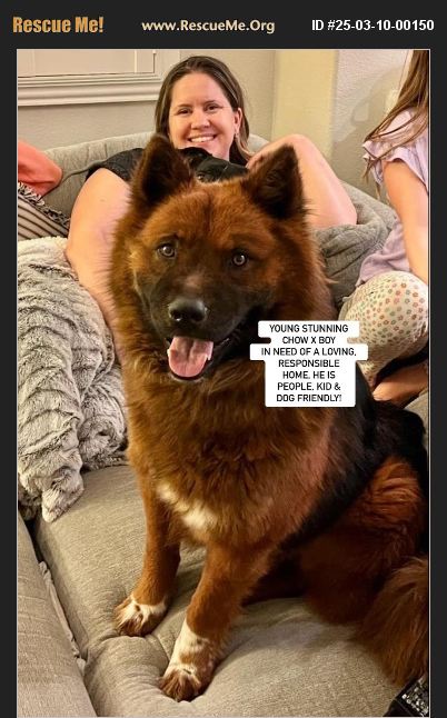 Courtesy Posting: RANCHO CUCAMONGA, CA (SO CAL)- APPROX 1.5 YR AWESOME and STUNNING MALE CHOW X 'TEDDY' - was euth listed at shelter, but a good Sam stepped up to foster to save him. NOW IN NEED OF A LOVING, RESPONSIBLE HOME, HE IS PEOPLE, KID AND DOG FRIENDLY! Please help us find a loving, responsible home for adorable Teddy after he was found roaming at a school, and taken to a high kill shelter. When he ended up on the euthanasia list, the original finder offered to foster him on his final day in hopes of finding a permanent home. However, this Good Samaritan has several dogs of her own and young kids, who he does well with, but she is unable to keep him longer term. Teddy's affectionate and sweet personality now shines in a home and once out of a scary shelter environment where he was previously and understandably scared. We now have nice videos showing good interaction with both people and other dogs. His finder/foster also tells us, 'He has been friendly with all dogs he's met. He's shy around people but then warms up. Loves kids.' and added he is 'extremely affectionate, nuzzles and cuddles, gentle with treats, very good on a leash, doesn't pull. I have taken him to work, very good office dog. Absolutely loves running in the rain barks only when he should - if there's a stranger on the porch or if he hears strangers in the house. Teddy also gets along well with the female medium and large dogs in this home, and has been fine with male dogs he has met outside this home. However, if you have another pet, a meet and greet is always recommended. 'Teddy is already potty trained, chipped, vaccinated, and recently neutered. The shelter and vet estimated he is between 1-2 years old, and weighs 55 lbs, so he is perfect size and ready for a new family to love on. If you are interested in applying for Teddy, please contact [email protected] or Southern California Chow Chow Rescue Network who is assisting with his placement. We will be posting more pictures and videos of dear Teddy on facebook at: https://www.facebook.com/783968124/posts/10166791162458125/?mibextid=wwXIfr Note: to view the contents of link you will need to copy and paste it into your browser.