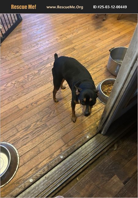 This animal is available to licensed rescue groups only. Please do not enquire unless with a licensed rescue group. Male minipin. House broke. Loves to be next to you. Sleeps in bed under the cover with you. Is crate trained and will go into crate when you tell him to go to bed. Food aggressive. Likes women more than men. Gets along with kids. My 90lb dog and him are not getting along and I am afraid he is going to get hurt. He gets along with my other dogs but have to keep him and my standard poodles apart.