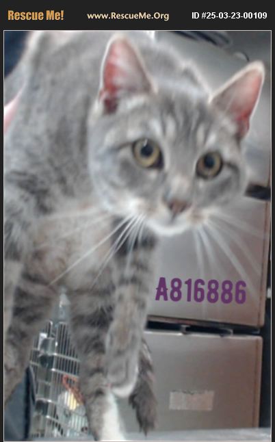 Located: Devore Shelter Name: My name is Momma Sydney. Description: I am a gray tabby, unaltered female, who looks like a Domestic Shorthair. Age: I am estimated to be 7 months old. More Info: I am in kennel D C606. I have been at the shelter since Mar 18, 2025. I was found near 7700 Block Outpost in Oak Hills.