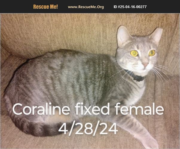 Coraline is very relaxed and when she wants attention she will come to you. She has a very soft meow. She doesn't like to be picked up a lot. Located 20 minutes from Peoria il