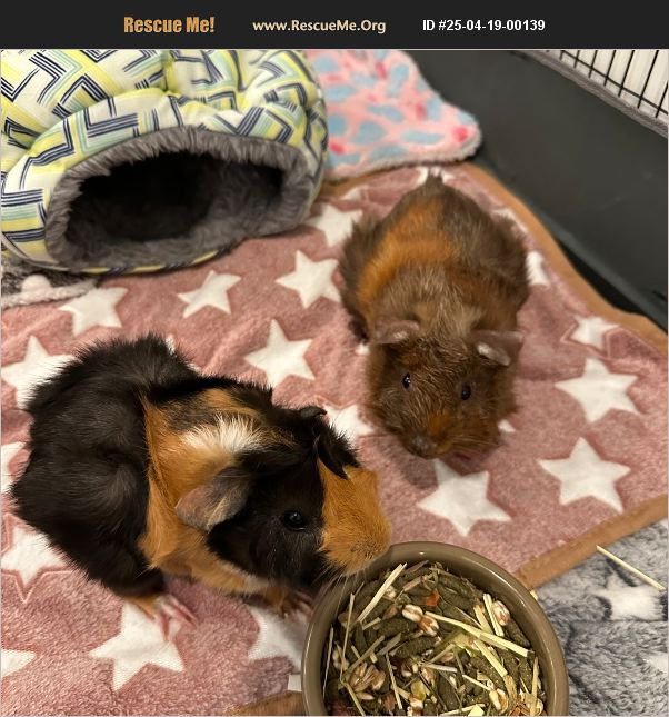 2 bonded male guinea pigs, about 1 year old. They come with 2 cages, lots of blankets, hideaways, toys, food, etc.