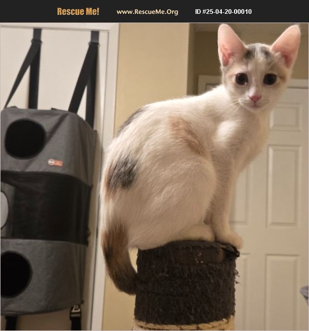 Hi, I'm Noel, an extremely sweet, muted calico kitten born ~Oct 2024 in Whitehouse, TX. Born to a feral mom, I was rescued malnourished and sick. My foster mom Florence adopted me, nursing and loving me back to health. Now spayed and vetted, I'm super energetic, curious, playful, and love to cuddle. I get along great with other cats and small dogs and need a cat sibling in an indoor-only home. I require a vet reference, no declawing, regular care, a signed agreement, and updates. My adoption fee supports my fosters. Adopt me for years of fun and love! If you apply, be sure to respond to our email which will we send in response to your application. You may also text us at 214-838-6288.