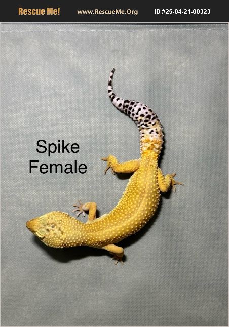 Hi my name is Spike! I am about 5 yrs old and enjoy being handled. I eat out of a bowl but am wary of the tongs. I was surrendered due to my owner having a child and having no time to take care of me. Proof of proper enclosure and supplies required. We do not ship reptiles!