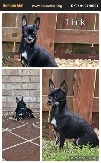 All You Need Is Faith, Trust, And A Little Bit Of Pixie Dust Tink is a 1.5 year old Chihuahua weighing in at 5 lbs. This tiny little girl is hoping a bit of pixie dust will make all her dreams come true. Tink is a little skittish but given time and patience this sweetheart will adjust to her new surroundings and be the perfect little lap warmer. Such a pretty little girl it will be so hard not to fall in love with Tink. Tink is working on perfecting her doggie manners. Crate, leash and potty training is coming along nicely. Great with other dogs, cats and kids 6 years old and up due to her size. Another smaller dog is required in Tink's new home. A securely fenced in yard is ideal as Tink may not pee on leash. Tink cannot be left unattended to go potty, she is very small and can easily be snatched up by predator birds etc. Tink may be shy at first but she is a precious little girl with a heart of gold. Wishing on a star hasn't work so far but Tink still has faith and trust that she will find her person. Dreams of comfy blankets and snuggles on the couch dance around in Tink's head. Will you help make her dreams come true? All of our animals are fully vetted which includes spay/neuter, up to date on vaccines, wormed, heartworm tested and treated if necessary, up to date on flea/tick/heartworm prevention and microchipped) prior to adoption. To start the adoption process please fill out (https://www.shelterluv.com/matchme/adopt/WAG/Dog) and please read our requirements located in the application.