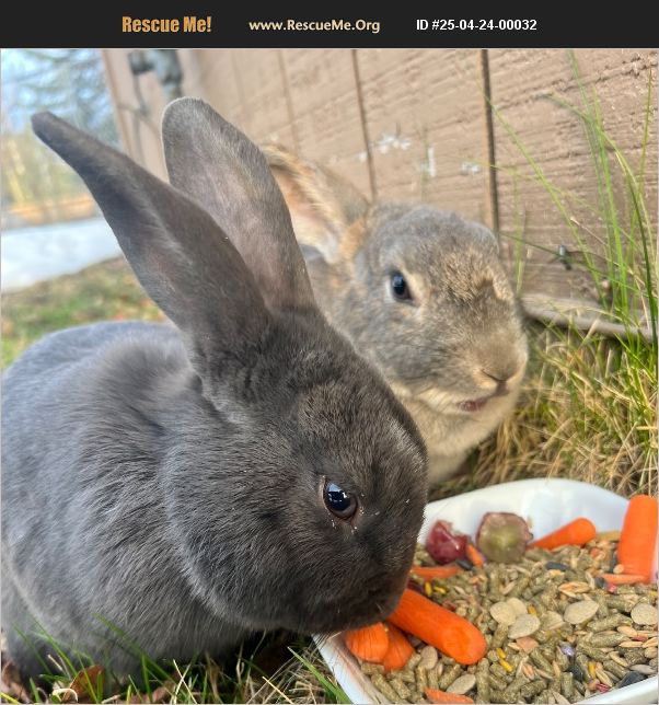 Hello! I am an Anchorage, AK resident and I have two bunnies who live outside my house. These bonded babies need a home. I don't know their story or their gender, but I assume they're two domesticated females. One is quite comfy with petting and touching, the other has *strong feelings* but she will also hop right up to you for snacks! We are calling them Fern and Ficus, and while they're somewhat safe and provided for in my yard, I'd love to see these house bunnies in a house.