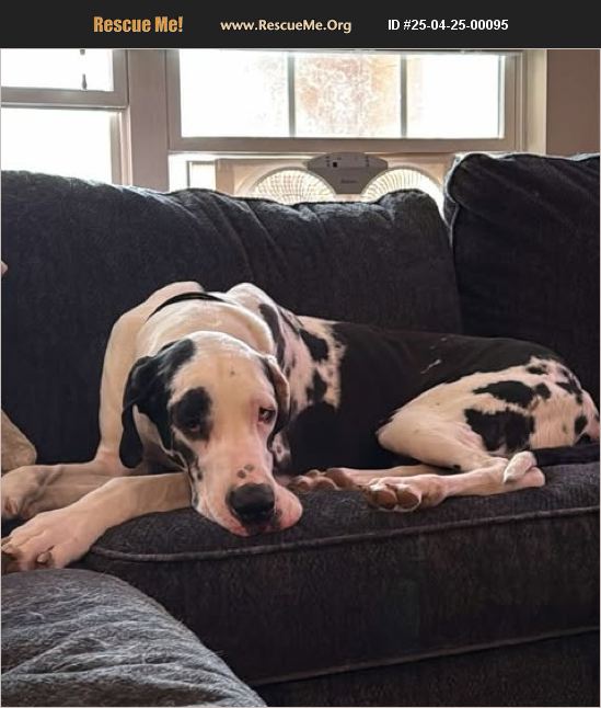 LOCATION: Zionsville, IN DOB: 06/25/2023 Meet Diesel, a striking Harlequin Great Dane with a big heart and even bigger dreams of finding his forever home. Currently living the good life with his foster dad in Indiana, Diesel is a gentle giant who just needs a little time to warm up-but once you're in his circle, you're in for life. Diesel is the perfect mix of sweet and sassy. He's a total cuddle bug at heart, happiest when he's stretched out on the couch with a soft blanket and a good pillow. Don't let his snuggly side fool you, though-he's also got a playful streak and loves showing off his zoomies and toy collection. And yes, he's been caught dumpster diving for snacks, but one firm 'no' is usually all it takes to remind him of his manners. Since arriving at his foster home, Diesel has been learning a ton. He knows how to sit, lie down, and go to his crate like a champ. He's picking up on 'place' and 'settle,' and with a little guidance, he responds beautifully. He's eager to please and loves having a job, especially if it means he gets to spend time with his favorite human. Diesel prefers calm introductions when meeting new people and would thrive in a quiet home without children. He lived happily with a female Great Dane and has done well with male dogs, too, so a home with one or two friendly, well-matched pups could be a great fit. Leash walking is still a work in progress, but with continued practice, he's sure to get the hang of it. He's crate trained, house-savvy, and ready to give his heart to someone who understands the quirks and charm of a sensitive, loyal Dane. Diesel will be neutered before heading to his new home-could that home be yours? If you're looking for a devoted companion who will make you laugh, snuggle you through stormy days, and fill your life with giant-sized love, Diesel might just be the one. ========================= To apply to adopt me, please fill out the application form! https://form.jotform.com/51994996709176 .
