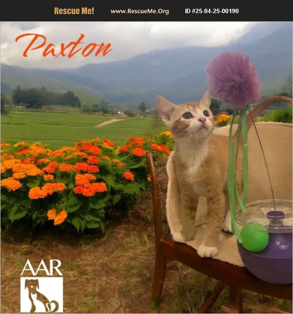 This little explorer is always on the move-scaling cat trees like a mountaineer and boldly investigating every nook and cranny like a true detective. But don't let this little kitten's curiosity fool you-Paxton has a soft side, too. After a big day of adventures, he's all about cuddles, purring contentedly in your lap or curling up for a cozy nap by your side.