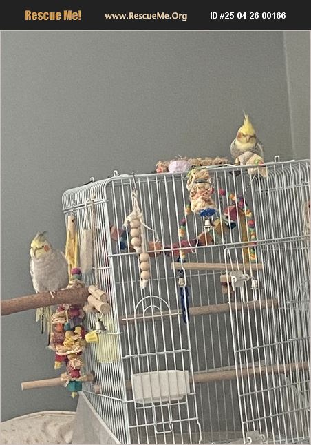 Best friends. Hand fed and handled all the time. Love interacting with people. Should you adopt these two, as they go together, cage, toys, food and some cage cleaning supplies go with them.