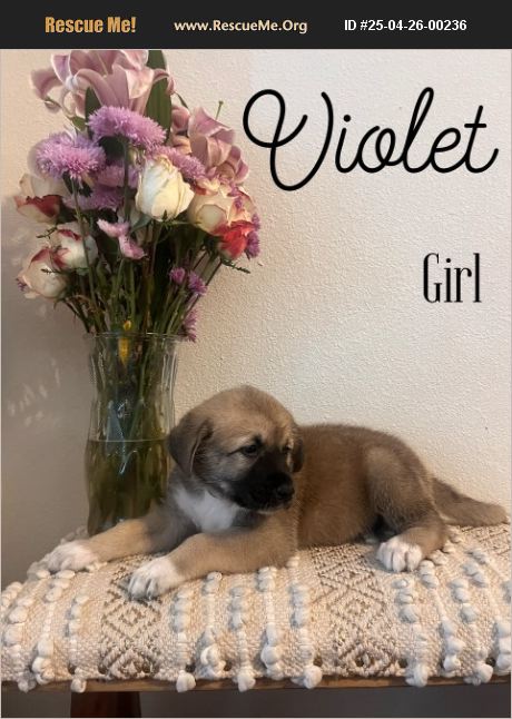 Available 5/10/25Name: Violet Gender: Female Weight: 10-12 pounds Age: 9-10 weeks Breed: unknown potential lab/pyr mix; Momma is a white lab Violet is very playful and sweet. She loves running around with my kids in the backyard. She likes to cuddle up with you and will rest her head on your shoulder. Good with dogs and kids. Working on house training
