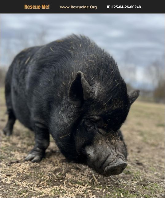 ***Bertram is bonded to two other pigs and an alpaca, so we are looking to place them all in a home where they will stay together!*** These 4 came to us from a hoarding case, where they and 60 or so other pigs had been left pretty much on their own, having to fend for themselves to find food and the only water source was a pond, covered mostly in green scum. We took these 4 because they were in the worst shape out of all of them. In her life before rescue Dolly had survived Meningeal worms, leaving her with some neurological deficiencies, but she doesn't let that stop her! Because of this, she has a pretty unique way of walking (a little bit sideways, like a crab!) and if she lays down the wrong way, she'll get stuck and will need some help getting up. We're guessing that she's about 12 years old or so, but unfortunately don't have any way to really tell. Bertram is the old man of the group and we're guessing that he's about 20 yrs old. He's a pretty vocal grumpy old man but loves treats, so you can bribe your way into his heart in no time! He has some arthritis in his hooves due to his age and poor breeding, but is well managed on daily anti-inflammatory medication. Betty and Bernard are the more outgoing duo of the group and are the two who actually enjoy when they get attention, rather than just tolerating it like the other two. When they first came to us, Betty had been so overweight that she was fat-blind, so she's been on a weight loss program and is at a good and healthy weight now! Bernard is an absolute sweetheart who is ready to go with the flow, whatever's happening, and is just a really chill dude overall who loves belly rubs and being the little spoon. He is also on daily oral medication as well as monthly pain medication injections to help with severe front leg arthritis that will require veterinary monitoring throughout his life. These 4 have gone through a lot together, so our goal is to find a sanctuary or home that is able to take all 4 of them so they can stay together. If that's you, check out waywardranch.org to fill out an application! ***WAYWARD RANCH IS CLOSING AND WE NEED TO REHOME ALL OF THE ANIMALS IN OUR CARE BY JULY 2025!!***