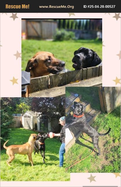 Meet Luther, (black dog) the most lovable gentle giant you'll ever meet! This young Daniff, a Great Dane and Mastiff mix-was rescued from a high-kill shelter in LA. He's been melting hearts ever since, with his enormous head and even bigger heart. He loves sitting pretty to show off how good he is, and he's always happy to meet people, big or small - he just wants to make friends everywhere he goes. Meet Taylor :) A sweet and smart girl rescued from the euth list at a high-kill LA shelter. She's half Ridgeback, half Great Dane and loves everyone-kids, adults, all dogs (big and small), and even cats! After a tough past as a breeding mama, she's ready for a fresh start with a family who will shower her with the love she deserves. She's full of tail wags, cuddles, and an endless supply of affection. Taylor is approx 3 yrs old. Fully kennel trained - UTD on vaccines and spayed. Please reach out to Leilani ([email protected]) if you're looking for a gentle giant who'll bring joy, laughs, and unconditional love into your life. Luther and Taylor are being fostered in the Seattle area. Can adopt both of them or separately. More pics are available too!