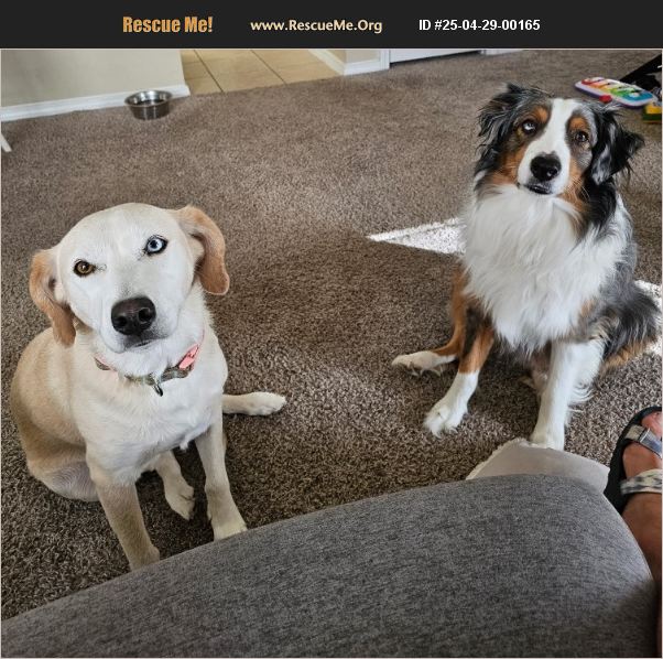 Archie and Cona are a bonded pair who must go together. Cona is an adult female, spayed, and she is a lab mixed with possibly Australian Shepard, possibly husky. They are kept mostly indoors, but they love outdoor recreation. They do not tolerate a kennel in any form.