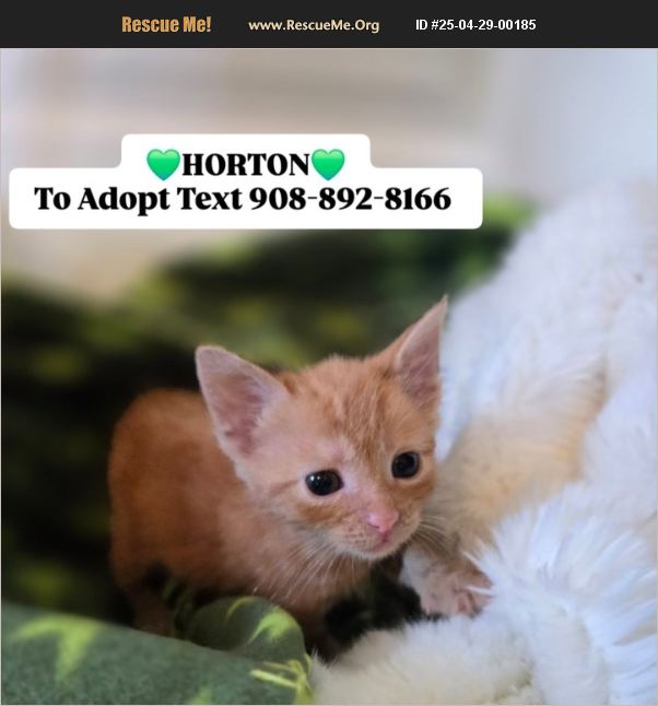 URGENT! SAVE HORTON!! This tiny orphaned homeless rescue kitten is from an over-crowded high-kill shelter and urgently needs an Adopter to Save Him! HORTON is absolutely adorable, smart, loving, and playful! To Adopt please Text Message 908-892-8166. ******HORTON is SIBLINGS with ELIZABETH, MARTINA, MARGARET, HERMAN and ALEXANDER! These kittens can be adopted Separately or Together!***