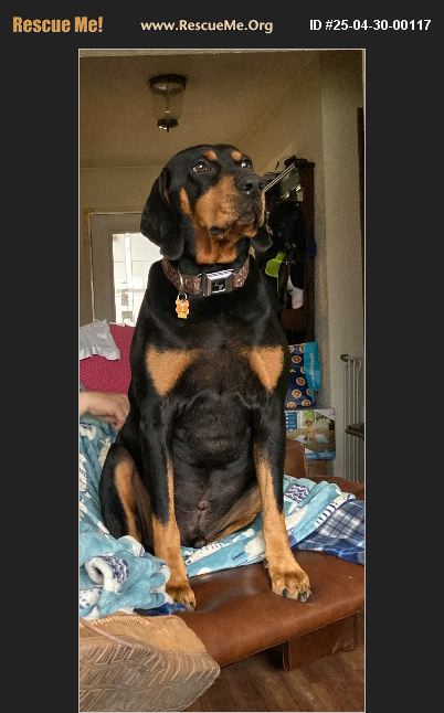 WayMore is a 80 pound+ black and tan coon hound. He loves to be a couch potato, and snuggles. loves to go for long walks, and is now learned how to play with toys. Very vocal when he is happy to see you. Absolutely loves his kibble. Crate trained house broke Great with my 10-year-old son great with my one year-old bull terrier unfortunately, my bull terrier is stressing him out. And for whatever reason, he does not take kindly to my husband feeding him probably previous owner did not treat him well during feeding, but he does not have a problem with men just for some reason, my husband. Because of this I need to find a better suited home. He needs a household to stretch his legs better and his vocal cords he would make a great hunting dog or a family dog. he is a drama queen. He needs gentle hands, kind heart, and patience.
