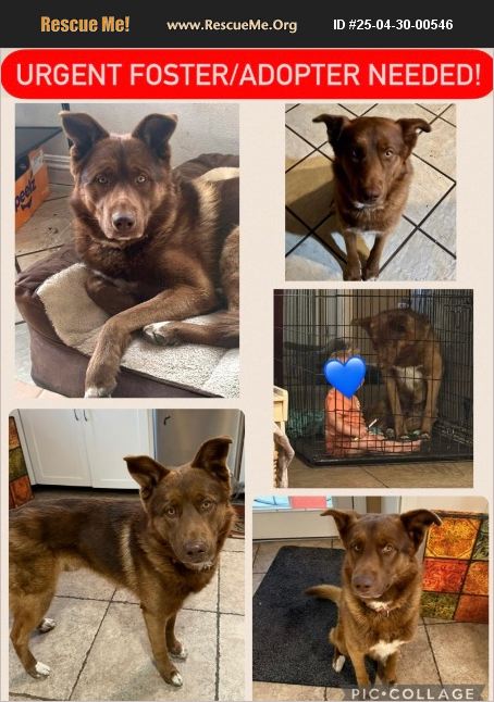 URGENT: Bison's Life Is on the Line if he's taken to the Riverside Shelter�'�|Please Help! This is desperate. Bison, a stunning 2-year-old Husky/Lab mix, is out of time, his family will take him to the high-kill Riverside shelter. He's sweet, loving, and full of life�'�|but if we can't find a foster or adopter immediately, he will go to the shelter and we can't bear to lose him. This is not his fault. His original family gave up on him. His elderly grandparents tried their best to keep him safe, but now he's going to be taken to the shelter�'�|scared and confused, wondering where his people went. Bison is the total package:Neutered & fully vaccinated. Housebroken & crate trained. Great with kids. Dog friendly. Loyal, affectionate, and eager to love. He deserves more than this. He deserves a second chance. But he needs YOU to make that happen�'�|now. We are BEGGING for a hero: Foster, Foster-to-adopt, Adopt. Please contact Jennifer at Pumpkin Pawz Rescue right away if you can help: (714) 366-8170 (Text is best). Even if you can't adopt, please share this post. Every share could be the one that saves Bison's life. Let's not let this sweet boy become another tragic statistic. Let's get Bison safe�'�|before it's too late.