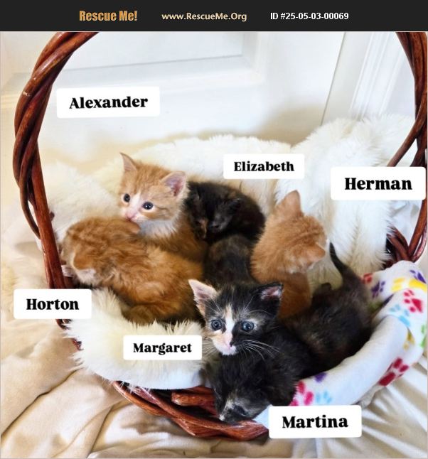 *To Rescue Adopt please TEXT MESSAGE 908-892-8166 *Please note you will need to specify which specific kitten you are inquiring to Adopt! *NOW AVAILABLE: TAKE ME HOME TODAY!** URGENT! SAVE ALEXANDER!! This sweet and loving little rescue kitten is ALEXANDER! He is from an over-crowded high-kill shelter and urgently needs an Adopter to Save Him! ALEX is gentle, smart, purrs when being held, and is verry affectionate loving, and playful! To Adopt please Text Message 908-892-8166 ***SIBLINGS: ELIZABETH, MARTINA and MARGARET, ALEXANDER, HERMAN and HORTON! These kittens can be adopted Separately or Together!**