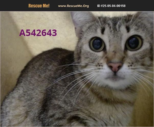 I am described as a female, brown tabby Domestic Shorthair. My age is unknown. I have been at the shelter since Apr 29, 2025 and I may be available for adoption on May 03, 2025 at 7:00AM.