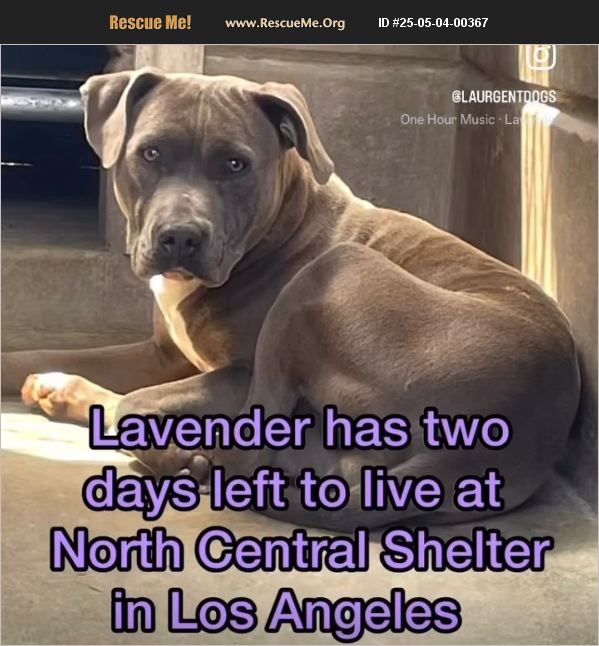 Lavender #A2186736, 3 yrs old, 57 lbs. will be euthanized on 5/6 due to kennel stress!!!! Video: https://www.facebook.com/reel/696646329551097/?fs=e&mibextid=wwXIfr&fs=e Lavender arrived at North Central on March 11th, after her 'owner' stated that she had bitten their significant other. Owner refused to give any information and 'Left' but then came back at some point and tied her up to the front door of the shelter. She was placed under quarantine and was prescribed meds to keep her calm. Medical staff were unable to touch her until recently (over a month Mater) to give her vaccines but finally she was given some yard time with volunteers and other furry friends. Lavender has been in 8 playgroups since her arrival in March! She has been described as gentle / dainty, tolerant, can keep to herself and gives good corrections. She shows interest & excitement around volunteers that she knows. Although her outings have been positive, Lavender is still having a tough time adjusting and needs help getting out of this stressful environment She is listed for euthanasia and MUST EXIT BY 4pm on TUES 5/6! OPEN Tues through Friday 8-5; Sat & Sun 11-5. For more info 888-452-7381 or laanimalservices.com North Central Animal Services Center - 3201 Lacy Street, Los Angeles, CA 90031
