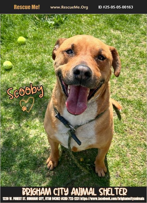 Check out this REEL of Scooby: https://www.instagram.com/reel/DJRsFp3O7WL/?igsh=Y3VlZ3J6NWh5emsx Meet Scooby! Age: 4 years Breed: Pit Bull / Lab Mix Neutered Male Adoption Fee: $40 Looking for a fun-loving, smart, and loyal companion? Look no further-Scooby is your guy! This handsome fella has higher energy, so he's ready for all your adventures-whether it's hiking, playing fetch, or zoomies in the yard! He's great with dogs, cats, kids, and chickens-a true social butterfly! Scooby knows basic commands, is crate trained, and potty trained to a doggy door -he's the full package of brains and heart! He's just waiting for his forever playmate. Could that be you? **All adoptions are upon approval of the adoption application only** Shelter Hours: Tues-Fri 12-6pm Brigham City Animal Shelter 1220 W Forest St, Brigham City, UT 84302 (435) 723-1231 https://www.facebook.com/brighamcityanimals Please check out the Volunteer Instagram page to see more animals available for adoption, videos, and more pictures: https://www.instagram.com/boxelderutadoptablecritters/ *Disclaimer: This post was created by a shelter volunteer. For more details, please contact the Brigham City Animal Shelter directly. Your support is greatly appreciated!
