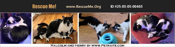Henry and Malcolm are gorgeous, playful and sweet, golden/green-eyed, two-year-old, male brother black and white 'cow' cats looking for a loving guardian together. These handsome fellows found themself in a cage at Chicago Animal Care and Control in June and were lucky to find a foster home through the Friends of Petraits Rescue foster program. They are very friendly with people and are waiting for a loving family while in foster care. They have proven to be all-around fabulous felines who use their litter box and scratching post like good boys. They love to snuggle and be pet. Although they also love to run and play hard with each other and get the kitty zoomies! They crave human attention and love to jump in your lap or curl up for a nap with you. Henry and Malcolm are neutered, dewormed, vaccinated for distemper and rabies, virus tested negative for FIV/Felv, and microchipped. They are easy to hold and allow you to trim their nails. They are looking for a family that will take them into their heart and home and give them the life they deserve. To meet and possibly adopt Malcolm and Henry, please fill out an adoption application https://friendsofpetraits.com/cat-adoption-application/ After the application is complete, please contact [email protected] to schedule an appointment to meet them. Their adoption fee of $200 as a pair benefits the Friends of Petraits Rescue. They are currently being fostered in Chicago.